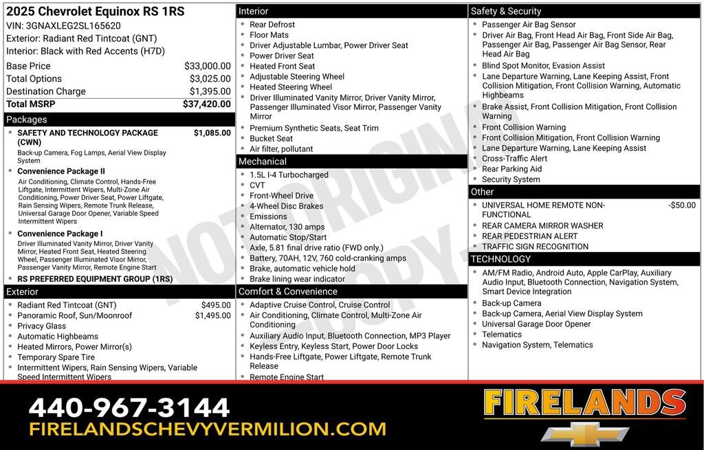 Whether you are looking for a Great Deal, a Great Price, or a Great Value, Firelands Chevrolet of VERMILION has you covered. Join us for the BEST Experience you will ever have. If we do not have what you are looking for, just let us know and we will find it. We have access to any make/model and also offer Certified Pre-Owned vehicles too. We can also locate vehicles with just about any option to include Sunroof, Moonroof, Navigation System, Heated Steering Wheel, HomeLink, LED Headlights, DVD Player, Rear Seat Entertainment, Backup Camera, Brake Assist, Automatic Emergency Braking, Blind Spot Monitoring, Cross Traffic Alert, Rear Cross Traffic Alert, Lane Departure Warning, Night Vision, Head-up Display, Automatic Parking, Cruise Control, Adaptive Cruise Control, Rain Sensing Wipers, Remote Engine Start, Memory Seat, Leather Seats, Heated Seats, Cooled Seats, Third (3rd) Row Seats, Steering Wheel Controls, Multi-zone Climate Control, Keyless Entry, Allow Wheels, Premium Wheels, Apple CarPlay, Android Auto, WiFi Hotspot, Premium Audio Sound System, Bluetooth® Audio, Hands-Free Audio, Portable Audio Connection, USB Port, Satellite Radio, Trailer Tow, Tow Hitch, 4WD, AWD, FWD, Disability Equipped, Keyless Start, Security System, Roof Rack, Dual Rear Wheels, Stability Control, and much more!