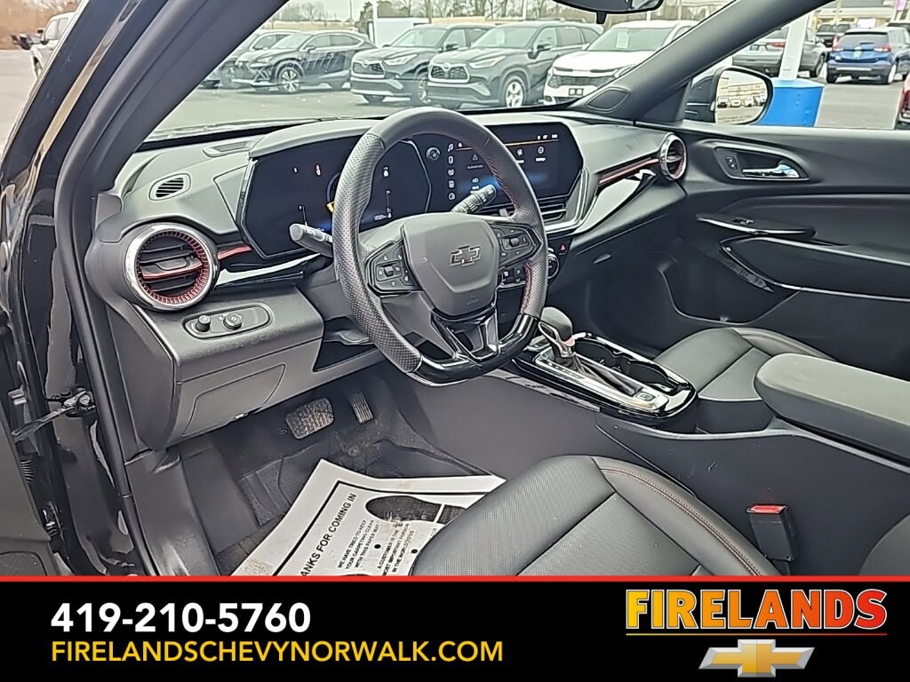 2025 Chevrolet Trax 2RSCar Bravo Certified, 1-Owner, Great Price, Clean CarFax, Like New, Leather Seats, Heated Seats, Heated Steering Wheel, Sunroof/Moonroof, Remote Start, Navigation System, CarPlay, Android Auto, Bluetooth, Backup Camera, Blind Spot Monitoring, Parking Sensors, Steering Wheel Controls, Cruise Control, Multi Zone Climate Control, Keyless Start, Keyless Entry, Premium Audio, Satellite Radio, Premium / Alloy Wheels, Trax 2RS, 6-Speed Automatic, Adaptive Cruise Control, Driver Confidence Package, Front and Rear All-Weather Floor Liners, Interior Protection Package, Jet Black Cargo Liner, Lane Change Alert with Side Blind Zone Alert, Power Sliding Glass Sunroof with Manual Shade, Preferred Equipment Group 2RS, Rear Cross-Traffic Alert, Rear Park Assist, Sunroof Package, Wireless Charging.Clean CARFAX.FWD 1.2L Ecotec Turbo DOHC DI w/VVT 6-Speed Automatic28/32 City/Highway MPG Recent Arrival!Awards:* Car and Driver 10 BestCar and Driver, January 2017.Welcome to the Firelands Family!! We understand that you donât want to come to a dealership and play games for hours. Thatâs why we focus on a few key principles: Be Really Fast Be Really Friendly, Be Really Fun, Be Really Honest. The price you see is the price you pay; plain and simple! We price our cars NOT our customers and hope that you have fun when you are here. We will never advertise misleading or confusing payments thatâs not our style. Rather, we hope to give you the best retail experience possible; after all: we LIVE off repeat and referral business. Our Vehicle Specialists are NOT paid on the profit (or loss) of a vehicle. You have DIRECT access to our Sales and Finance Managers cell phone numbers. We canât wait to put our best foot forward and have you leave smiling for years to come!