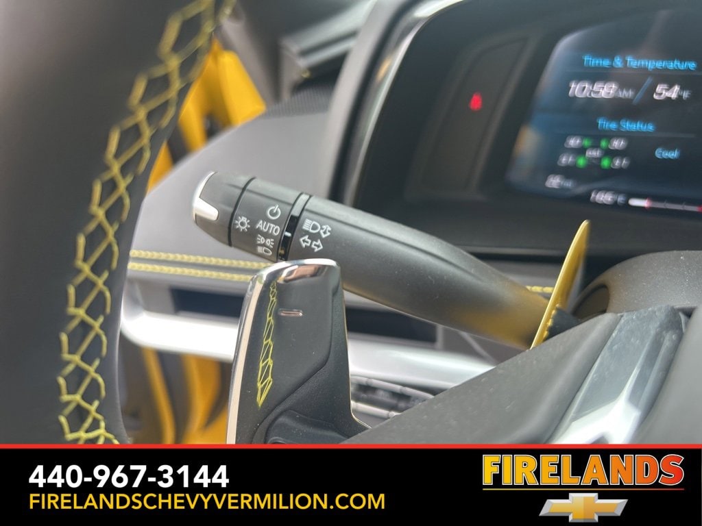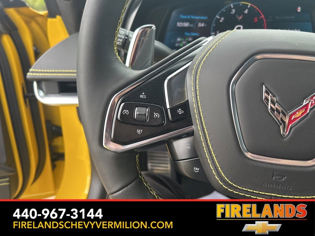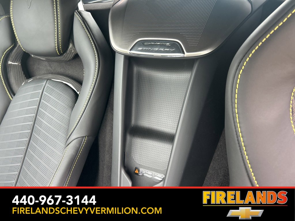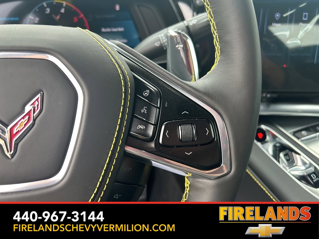 2025 Competition Yellow Tintcoat Metallic Chevrolet Corvette Stingray 3LT RWD 8-Speed Dual Clutch 6.2L V8 2 Cargo Nets, 8-Way Power Driver Seat Adjuster, 8-Way Power Passenger Seat Adjuster, Auto-dimming door mirrors, Bose Performance Series Sound System w/14 Speakers, Carbon Flash Metallic Dual Racing Stripes, Custom Leather Wrapped Interior Package, Driver Power Bolster Seat Adjuster, Electrical Theft Deterrent System, Electronic Limited-Slip Differential, Garage door transmitter, GT2 Bucket Seats, HD Front & Rear Vision Cameras, Head-Up Display, Heated & Vented Driver & Passenger Seats, Heated door mirrors, Heated Steering Wheel, Heavy-Duty Cooling System, Memory Driver & Passenger Convenience Package, Memory seat, Navigation System, Passenger Power Bolster Seat Adjuster, Performance Data & Video Recorder, Performance Exhaust w/Stainless-Steel Tips, Performance Rear Axle Ratio, Performance Traction Management, Power door mirrors, Power Driver Lumbar Control Seat Adjuster, Power driver seat, Power Passenger Lumbar Control Seat Adjuster, Power-Adjustable Outside Heated Mirrors, Preferred Equipment Group 3LT, Radio: Chevrolet Infotainment 3 Premium System, Rear Cross Traffic Alert, Rear Z51 Spoiler, Side Blind Zone Alert, Steering wheel mounted audio controls, Sueded Microfiber-Wrapped Upper Interior Trim Pkg, Turn signal indicator mirrors, Universal Home Remote, Vehicle Inclination Theft Deterrent Sensor, Vehicle Interior Movement Theft Deterrent Sensor, Wheels: 19 x 8.5 Fr/20 x 11 Rr Bright Silver, Wireless Charging for Devices, Z51 Performance Brakes, Z51 Performance Package, Z51 Performance Suspension.