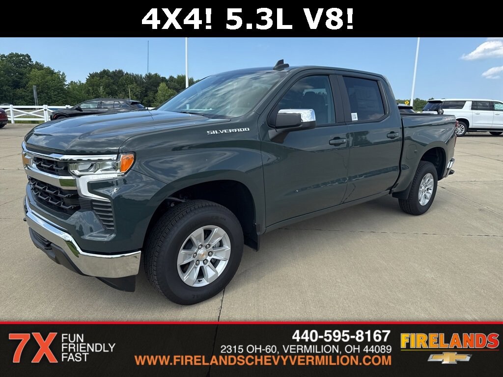 2025 Cypress Gray Chevrolet Silverado 1500 LT LT1 4WD 8-Speed Automatic EcoTec3 5.3L V8 AWD / 4WD, AppleCar Play / Android Auto, Heated Seats, Rear / Backup Camera, Remote Start, 8-Speed Automatic, 4WD, Black Cloth, 10-Way Power Driver Seat w/Lumbar, 120-Volt Bed Mounted Power Outlet, 120-Volt Interior Power Outlet, All-Star Edition, Convenience Package, Dual Rear USB Ports (Charge Only), Dual-Zone Automatic Climate Control, Electric Rear-Window Defogger, Heated Driver & Front Outboard Passenger Seats, Heated Steering Wheel, Hitch Guidance, Keyless Open & Start, LED Cargo Area Lighting, Manual Tilt/Telescoping Steering Column, Remote Start Package, Remote Vehicle Starter System, Standard Suspension Package, Theft Deterrent System (Unauthorized Entry), Trailering Package, Wheels: 17 x 8 Bright Silver Painted Aluminum, Wrapped Steering Wheel.