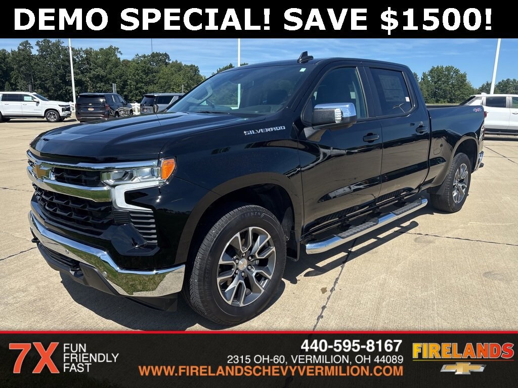 2025 Black Chevrolet Silverado 1500 LT 4WD 8-Speed Automatic EcoTec3 5.3L V8 AWD / 4WD, Heated Seats, 8-Speed Automatic, 4WD, Black Cloth, 10-Way Power Driver Seat w/Lumbar, 12.3 Multicolor Reconfigurable Digital Display, 120-Volt Bed Mounted Power Outlet, 120-Volt Interior Power Outlet, All Star Edition Plus, All-Star Edition, Auto-Locking Rear Differential, Bluetooth® For Phone, Chevytec Spray-On Black Bedliner, Chrome Mirror Caps, Color-Keyed Carpeting Floor Covering, Convenience Package, Convenience Package II, Deep-Tinted Glass, Dual Rear USB Ports (Charge Only), Dual-Zone Automatic Climate Control, Electric Rear-Window Defogger, Electronic Cruise Control, Enhanced Cooling Radiator, EZ Lift Power Lock & Release Tailgate, Front Frame-Mounted Black Recovery Hooks, Front Rubberized Vinyl Floor Mats, HD Rear Vision Camera, HD Surround Vision, Heated Driver & Front Outboard Passenger Seats, Heated Power-Adjustable Outside Mirrors, Heated Steering Wheel, Heavier Duty Rear Springs, Hitch Guidance, Hitch Guidance w/Hitch View, In-Vehicle Trailering System App, Increased RGAWR, Inside Rear-View Mirror w/Tilt, Integrated Trailer Brake Controller, Keyless Open & Start, LED Cargo Area Lighting, Manual Tilt/Telescoping Steering Column, Max Trailering Package, OnStar Services Capable, Perimeter Lighting, Power Front Windows w/Driver Express Up/Down, Power Front Windows w/Passenger Express Down, Power Rear Windows w/Express Down, Power Sliding Rear Window w/Rear Defogger, Preferred Equipment Group 1LT, Protection Package, Rear 60/40 Folding Bench Seat (Folds Up), Rear Cross Traffic Braking, Rear Pedestrian Alert, Rear Rubberized-Vinyl Floor Mats, Rear Wheelhouse Liners, Remote Start Package, Remote Vehicle Starter System, Safety Package, SiriusXM w/360L Trial Subscription, Standard Suspension Package, Standard Tailgate, Steering Wheel Audio Controls, Teen Driver, Theft Deterrent System (Unauthorized Entry), Tire Pressure Monitoring System, Trailer Camera Provisions, Trailer Side Blind Zone Alert, Trailering Package, Ultrasonic Front & Rear Park Assist, Universal Home Remote, Wheels: 20 x 9 Painted Aluminum, Wi-Fi Hot Spot Capable, Wrapped Steering Wheel.