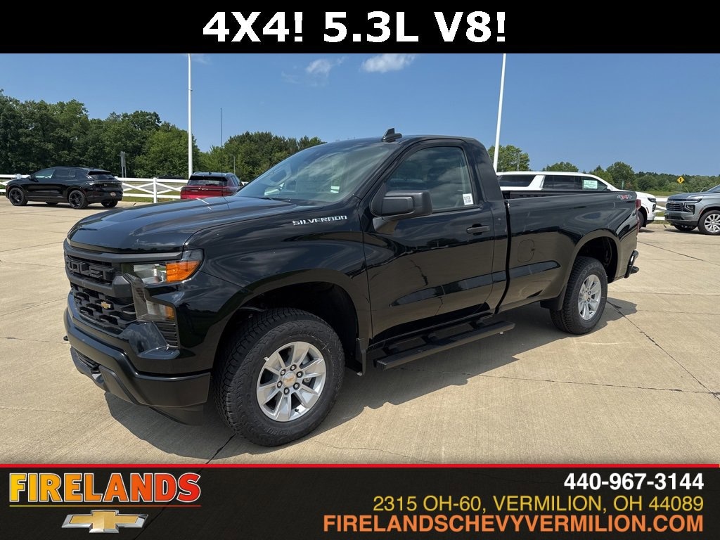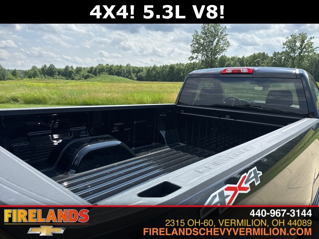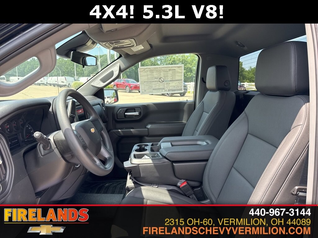 2025 Black Chevrolet Silverado 1500 WT 4WD 8-Speed Automatic EcoTec3 5.3L V8 AWD / 4WD, AppleCar Play / Android Auto, 8-Speed Automatic, 4WD, Jet Black Vinyl, 3.5 Monochromatic Display Driver Info Center, 4-Way Manual Driver Seat Adjuster, Black (Semi-Gloss) Front Bumper, Black (Semi-Gloss) Rear Bumper, Bluetooth® For Phone, Deep-Tinted Glass, Electric Rear-Window Defogger, Electronic Cruise Control, Front Frame-Mounted Black Recovery Hooks, HD Rear Vision Camera, Heated Power-Adjustable Outside Mirrors, Hitch Guidance, Inside Rear-View Mirror w/Tilt, Locking Tailgate, Manual Tailgate Function w/No EZ Lift, Manual Tilt Wheel Steering Column, OnStar Services Capable, Power Front Windows w/Driver Express Up/Down, Power Front Windows w/Passenger Express Down, Preferred Equipment Group 1WT, Remote Keyless Entry, Rubberized-Vinyl Floor Covering, SiriusXM Delete, Solar Absorbing Tinted Glass, Standard Suspension Package, Standard Tailgate, Teen Driver, Tire Pressure Monitoring System, Trailering Package, Wheels: 17 x 8 Ultra Silver Painted Steel, Wi-Fi Hot Spot Capable, WT Convenience Package, WT Value Package.