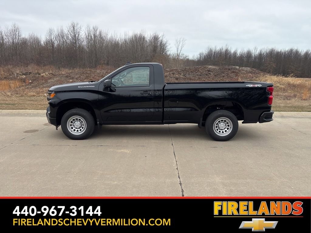 2026 Black Chevrolet Silverado 1500 WT 4WD 10-Speed Automatic EcoTec3 5.3L V8 10-Speed Automatic, 4WD, Jet Black Vinyl, Standard Suspension Package.