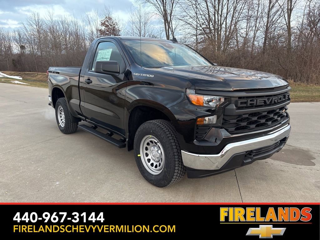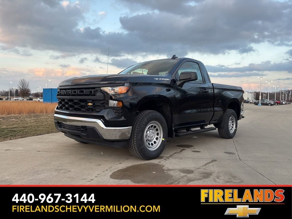 2026 Black Chevrolet Silverado 1500 WT 4WD 8-Speed Automatic 2.7L I4 Turbocharged DOHC 16V LEV3-SULEV30 310hp 8-Speed Automatic, 4WD, Jet Black Vinyl.