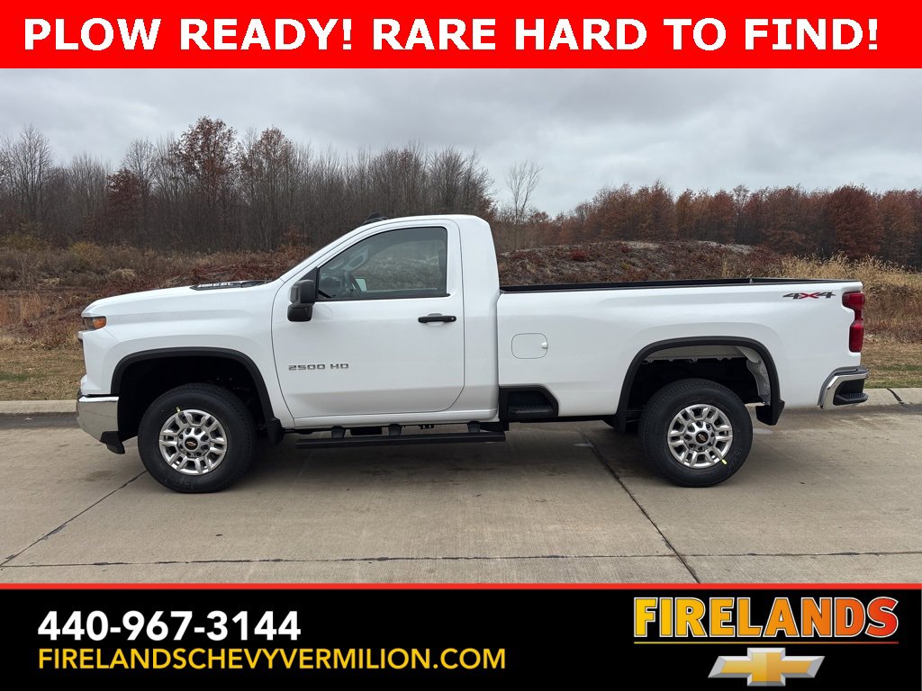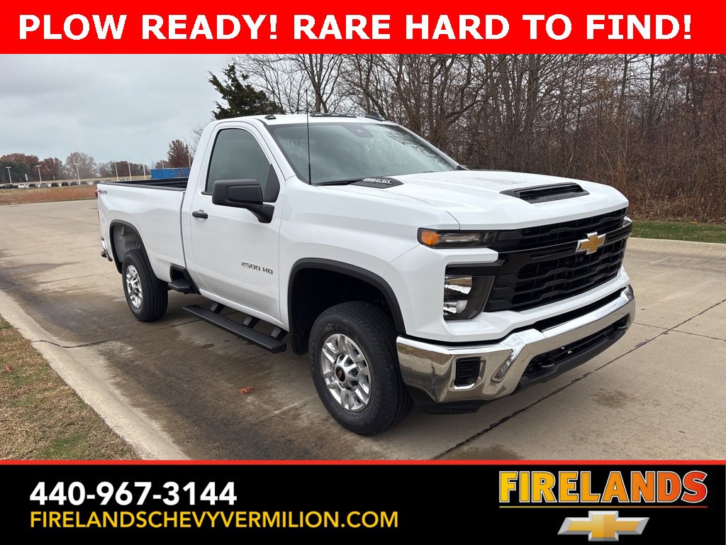 Thank-you for allowing us to Serve you. Our amazing hospitality starts with us opening the door for you with a smile and a humble handshake and ends with a full tank of gas on every vehicle...and sometimes a hug. Buy with confidence at Firelands Chevy Vermilion, where you receive a copy of our detailed service report and a free vehicle history report by CarFax. If you canât make to us, let us come to you. Our pleasant staff will personally deliver any vehicle up to 150 miles at no charge.2026 Summit White Chevrolet Silverado 2500HD Work Truck 4WD 10-Speed Automatic 6.6L V8 PLOW READY!, 2D Standard Cab, 6.6L V8, 4WD, 2-Speed Electronic Shift Transfer Case, 3.5 Diagonal Monochromatic Display DIC, 3.73 Rear Axle Ratio, ABS brakes, Bluetooth® For Phone, Chevrolet Connected Access Capable, Compass, Durabed Pickup Bed, Electronic Cruise Control with Set and Resume Speed, Electronic Stability Control, HD Rear Vision Camera, Locking Tailgate, Manual Tilt-Wheel Steering Column, Power Door Locks, Power Front Windows with Driver Express Up/Down, Preferred Equipment Group 1WT, Push Button Start, Remote keyless entry, Rubberized-Vinyl Floor Covering, Solar Absorbing Tinted Glass, Suspension Package, Traction control, Wheels: 17 Silver Painted Steel, Wi-Fi Hotspot Capable, Wireless Phone Projection.Whether you are looking for a Great Deal, a Great Price, or a Great Value, Firelands Chevrolet of VERMILION has you covered. Join us for the BEST Experience you will ever have. If we do not have what you are looking for, just let us know and we will find it. We have access to any make/model and also offer Certified Pre-Owned vehicles too. We can also locate vehicles with just about any option to include Sunroof, Moonroof, Navigation System, Heated Steering Wheel, HomeLink, LED Headlights, DVD Player, Rear Seat Entertainment, Backup Camera, Brake Assist, Automatic Emergency Braking, Blind Spot Monitoring, Cross Traffic Alert, Rear Cross Traffic Alert, Lane Departure Warning, Night Vision, Head-up Display, Automatic Parking, Cruise Control, Adaptive Cruise Control, Rain Sensing Wipers, Remote Engine Start, Memory Seat, Leather Seats, Heated Seats, Cooled Seats, Third (3rd) Row Seats, Steering Wheel Controls, Multi-zone Climate Control, Keyless Entry, Allow Wheels, Premium Wheels, Apple CarPlay, Android Auto, WiFi Hotspot, Premium Audio Sound System, Bluetooth® Audio, Hands-Free Audio, Portable Audio Connection, USB Port, Satellite Radio, Trailer Tow, Tow Hitch, 4WD, AWD, FWD, Disability Equipped, Keyless Start, Security System, Roof Rack, Dual Rear Wheels, Stability Control, and much more!
