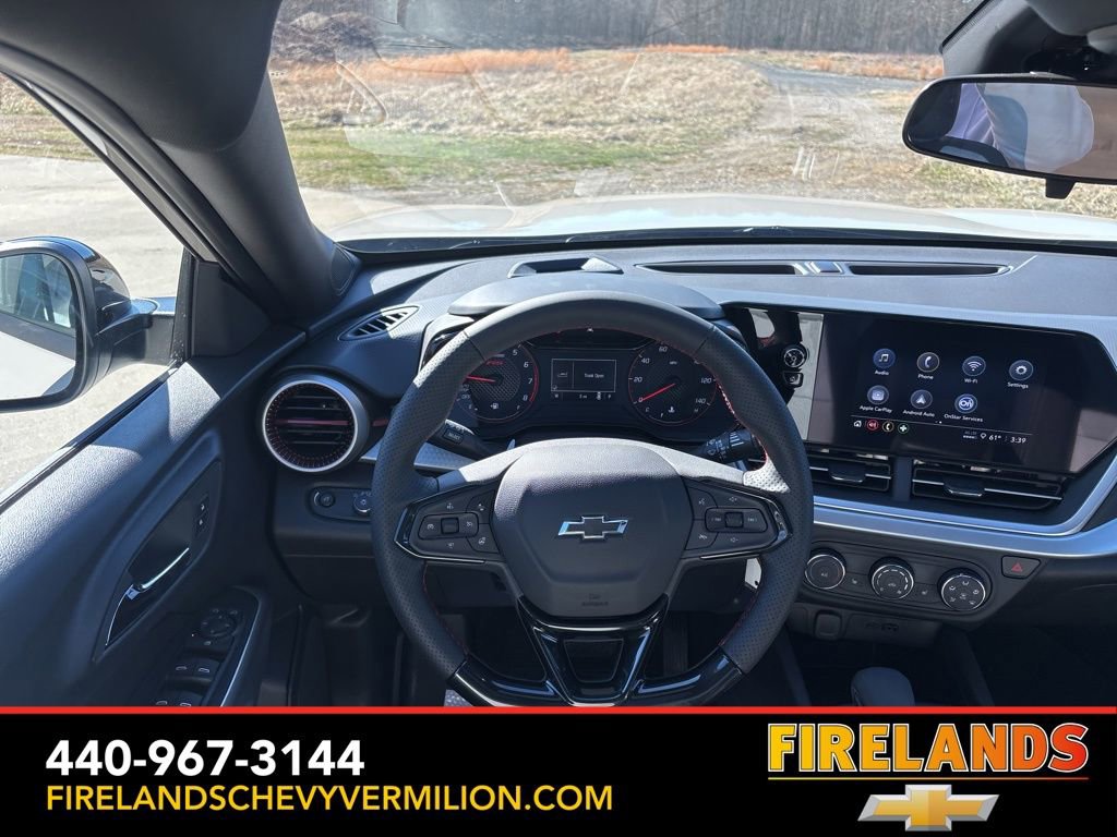Inside, the Trax 1RS pampers you with a host of comfort and convenience features. Sink into the heated front seats, enjoy the warmth of the heated steering wheel, and stay connected with the Chevrolet Infotainment 3 System with wireless Apple CarPlay and Android Auto integration.