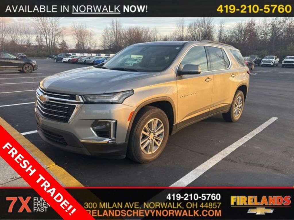 2023 Chevrolet Traverse LTCar Bravo Certified, 1-Owner, Great Price, Clean CarFax, Like New, Heated Seats, Navigation System, CarPlay, Android Auto, Bluetooth, Backup Camera, Steering Wheel Controls, Cruise Control, Multi Zone Climate Control, Keyless Start, Keyless Entry, Power Lift Gate, Premium Audio, Satellite Radio, Third Row Seats, Premium / Alloy Wheels, FWD, Jet Black Cloth, 1st & 2nd Row All-Weather Floor Liner (LPO), 3rd Row All-Weather Floor Liner (LPO), 4.2 Multi-Color Enhanced Driver Instrument Display, Convenience & Driver Confidence Package, Floor Liner Package (LPO), Heated Driver & Front Passenger Seats, Integrated Cargo Liner (LPO), Preferred Equipment Group 1LT, Radio: Chevrolet Infotainment 3 Plus System, Rear Power Liftgate, Remote Start, SiriusXM w/360L, Universal Home Remote.Clean CARFAX. CARFAX One-Owner.FWD 3.6L V6 SIDI VVT 9-Speed AutomaticPriced below KBB Fair Purchase Price! Odometer is 2437 miles below market average! 18/27 City/Highway MPG Recent Arrival!Welcome to the Firelands Family!! We understand that you donât want to come to a dealership and play games for hours. Thatâs why we focus on a few key principles: Be Really Fast Be Really Friendly, Be Really Fun, Be Really Honest. The price you see is the price you pay; plain and simple! We price our cars NOT our customers and hope that you have fun when you are here. We will never advertise misleading or confusing payments thatâs not our style. Rather, we hope to give you the best retail experience possible; after all: we LIVE off repeat and referral business. Our Vehicle Specialists are NOT paid on the profit (or loss) of a vehicle. You have DIRECT access to our Sales and Finance Managers cell phone numbers. We canât wait to put our best foot forward and have you leave smiling for years to come!