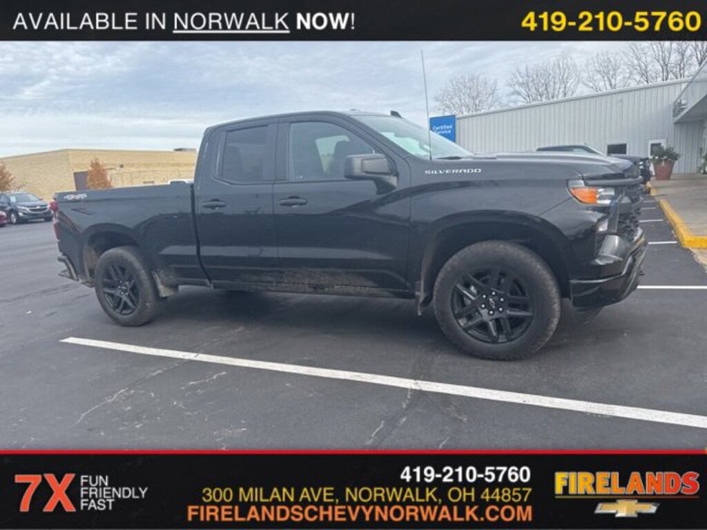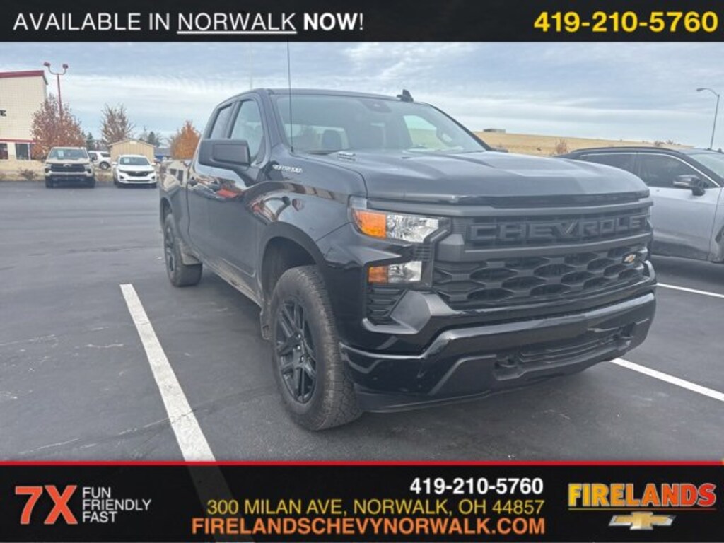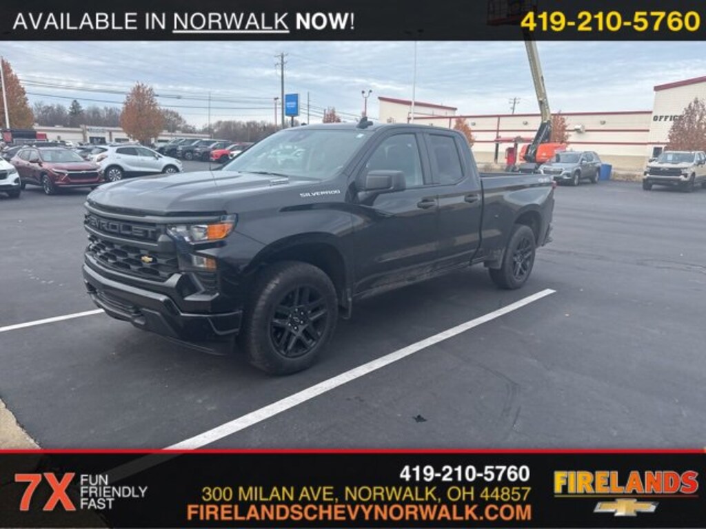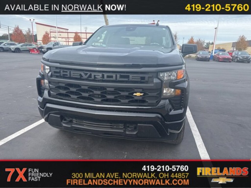2024 Chevrolet Silverado 1500 CustomCar Bravo Certified, 1-Owner, Great Price, Clean CarFax, Like New, 4WD / 4x4 / AWD, CarPlay, Android Auto, Bluetooth, Backup Camera, Steering Wheel Controls, Cruise Control, Keyless Start, Keyless Entry, Premium Audio, Satellite Radio, Premium / Alloy Wheels, Tow Package, Trailer Package, Trailer Hitch, 2.7L I4 Turbocharged DOHC 16V LEV3-SULEV30 310hp, 8-Speed Automatic, 4WD, Black, Black Cloth, 10-Way Power Driver Seat w/Lumbar, 120-Volt Bed Mounted Power Outlet, 120-Volt Interior Power Outlet, 3.5 Monochromatic Display Driver Info Center, 4 Black Round Assist Steps (LPO), Black Name Plates (LPO), Bluetooth® For Phone, Chevrolet Connected Access Capable, Color-Keyed Carpeting Floor Covering, Custom Convenience Package, Custom Value Package, Dark Essentials Package (LPO), Deep-Tinted Glass, Dual Rear USB Ports (Charge Only), Electric Rear-Window Defogger, Electrical Steering Column Lock, Electronic Cruise Control, EZ Lift Power Lock & Release Tailgate, Front Frame-Mounted Black Recovery Hooks, Front Rubberized Vinyl Floor Mats, HD Rear Vision Camera, High Capacity Suspension Package, Hitch Guidance, LED Cargo Area Lighting, Manual Tilt Wheel Steering Column, OnStar & Chevrolet Connected Services Capable, Power Front Windows w/Driver Express Up/Down, Power Front Windows w/Passenger Express Down, Power Rear Windows w/Express Down, Preferred Equipment Group 1CX, Rear 60/40 Folding Bench Seat (Folds Up), Rear Rubberized-Vinyl Floor Mats, Remote Keyless Entry, Remote Vehicle Starter System, SiriusXM Radio, Standard Tailgate, Theft Deterrent System (Unauthorized Entry), Trailering Package, TurboMax Blackout Package, Wheels: 20 x 9 High Gloss Black Painted Alum, Wi-Fi Hot Spot Capable.Clean CARFAX. CARFAX One-Owner.4WD 2.7L I4 Turbocharged DOHC 16V LEV3-SULEV30 310hp 8-Speed AutomaticRecent Arrival!Welcome to the Firelands Family!! We understand that you donât want to come to a dealership and play games for hours. Thatâs why we focus on a few key principles: Be Really Fast Be Really Friendly, Be Really Fun, Be Really Honest. The price you see is the price you pay; plain and simple! We price our cars NOT our customers and hope that you have fun when you are here. We will never advertise misleading or confusing payments thatâs not our style. Rather, we hope to give you the best retail experience possible; after all: we LIVE off repeat and referral business. Our Vehicle Specialists are NOT paid on the profit (or loss) of a vehicle. You have DIRECT access to our Sales and Finance Managers cell phone numbers. We canât wait to put our best foot forward and have you leave smiling for years to come!