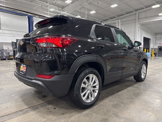 With its sleek black exterior, this TrailBlazer LS exudes a bold and sophisticated presence. The 17-inch silver-painted aluminum wheels and body-color bumpers add a touch of refinement, while the rear spoiler enhances the vehicle's aerodynamic profile.