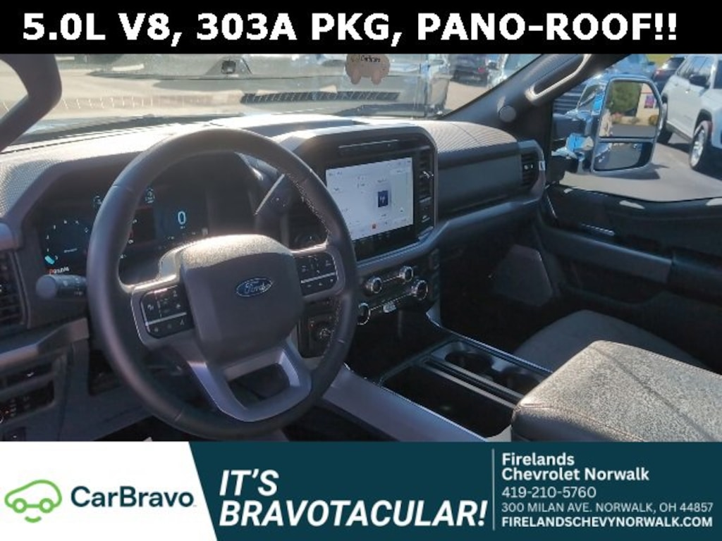 Car Bravo Certified, 1-Owner, Great Price, Clean CarFax, Like New, 4WD / 4x4 / AWD, Heated Seats, Panoramic Roof, Remote Start, Navigation System, CarPlay, Android Auto, Bluetooth, Backup Camera, Steering Wheel Controls, Cruise Control, Multi Zone Climate Control, Keyless Start, Keyless Entry, Premium Audio, Satellite Radio, Premium / Alloy Wheels, Tow Package, Trailer Package, Trailer Hitch, One Owner, Rare and Hard to Find, Accident Free CarFax, Locally Owned New Car Trade, Power Sunroof/Moonroof, AWD / 4WD, 4D SuperCrew, 5.0L V8, 4WD, Black W/Smoked Truffle Cloth, 3.31 Axle Ratio, 400W Cab & Bed Outlets, 6 Speakers, Adaptive Cruise Control w/Stop & Go, Auto-Dimming Rear-View Mirror, Cloth 40/Console/40 Front Seats, Console Worksurface, Equipment Group 303A High, Ford BlueCruise Equipped (90-Day Trial), Heated Front Seats, Integrated Trailer Brake Controller, Intelligent Access w/Push Button Start, Mobile Office Package, Navigation system: Connected Navigation, Partitioned Lockable Rear Storage, Power Glass Heated Sideview Mirrors, Power-Adjustable Pedals, Power-Sliding Rear Window, Radio: B&O Sound System by Bang & Olufsen, Remote Start System w/Remote Tailgate Release, Speed Sign Recognition, Tow/Haul Package, Wheels: 20 Chrome-Like PVD.