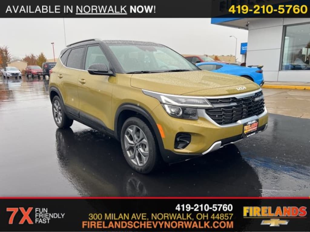 2024 Kia Seltos SCar Bravo Certified, 1-Owner, Great Price, Clean CarFax, Like New, 4WD / 4x4 / AWD, Remote Start, Navigation System, CarPlay, Android Auto, Bluetooth, Backup Camera, Steering Wheel Controls, Cruise Control, Keyless Start, Keyless Entry, Premium Audio, Satellite Radio, Premium / Alloy Wheels, 4D Sport Utility, AWD, Valais Green/Black Roof, Glossy Black Door Garnish, Glossy Black Door Garnish Package, Navigation System.Clean CARFAX. CARFAX One-Owner.AWD 2.0L I4 MPI CVTOdometer is 15786 miles below market average! 27/31 City/Highway MPG Recent Arrival!Welcome to the Firelands Family!! We understand that you donât want to come to a dealership and play games for hours. Thatâs why we focus on a few key principles: Be Really Fast Be Really Friendly, Be Really Fun, Be Really Honest. The price you see is the price you pay; plain and simple! We price our cars NOT our customers and hope that you have fun when you are here. We will never advertise misleading or confusing payments thatâs not our style. Rather, we hope to give you the best retail experience possible; after all: we LIVE off repeat and referral business. Our Vehicle Specialists are NOT paid on the profit (or loss) of a vehicle. You have DIRECT access to our Sales and Finance Managers cell phone numbers. We canât wait to put our best foot forward and have you leave smiling for years to come!