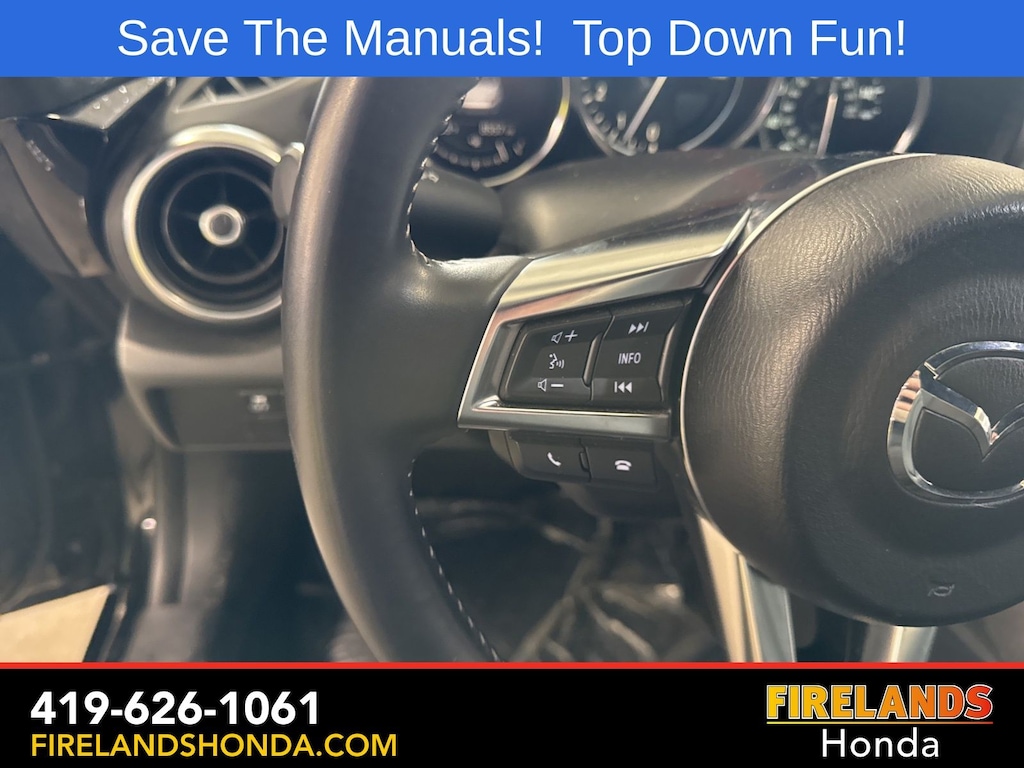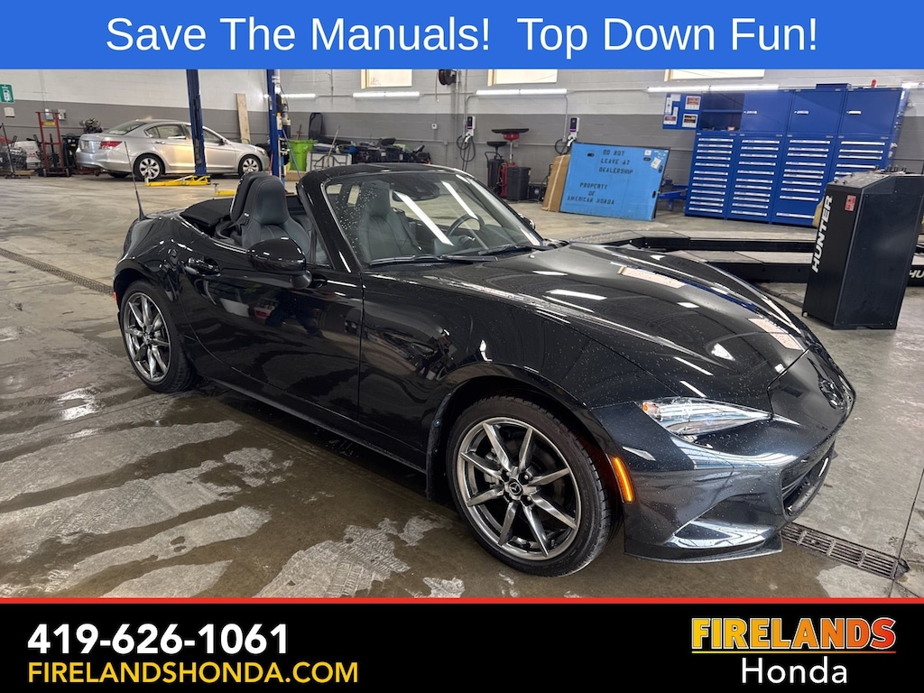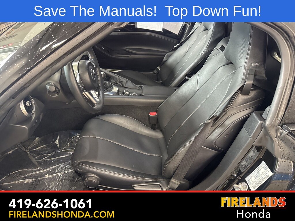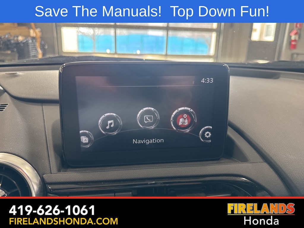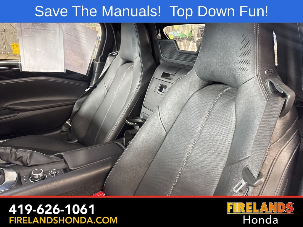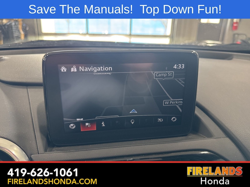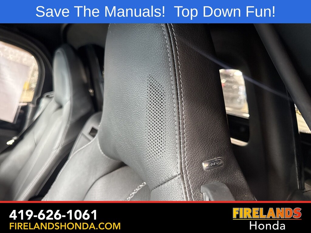 Firelands Honda is proud to offer this superb 2022 Mazda MX-5 Miata in Jet Black Mica. This MX-5 Miata has been checked by our award winning service department. Hot features include: Bluetooth Hands Free, Back Up Camera, Navigation / GPS, Balance of Factory Warranty, Service Records Available, Heated Leather Seats, Lane Departure Warning, Apple Carplay/Android Auto, Fog Lights, Automatic Emergency Braking, Forward Collision Warning, Clean CARFAX, No Accidents, Bose Speakers, 4-Wheel Disc Brakes, 9 Speakers, ABS brakes, Air Conditioning, All Weather Floor Mats, Alloy wheels, AM/FM radio: SiriusXM, AppLink/Apple CarPlay and Android Auto, Auto High-beam Headlights, Auto-dimming Rear-View mirror, Automatic temperature control, Brake assist, Bumpers: body-color, Cargo Net, Cargo Tray, Convertible roof lining, Convertible roof wind blocker, Delay-off headlights, Driver vanity mirror, Dual front impact airbags, Dual front side impact airbags, Electronic Stability Control, Emergency communication system: MAZDA CONNECT, Exterior Parking Camera Rear, First Aid Kit, Four wheel independent suspension, Front anti-roll bar, Front Bucket Seats, Front Center Armrest, Fully automatic headlights, Garage door transmitter: HomeLink, Glass rear window, Heated door mirrors, Heated Front Bucket Seats, Heated front seats, Illuminated entry, Leather Shift Knob, Leather Upholstery w/Light Gray Stitching, Low tire pressure warning, MAZDA CONNECT, Navigation System, Occupant sensing airbag, Outside temperature display, Panic alarm, Passenger vanity mirror, Power door mirrors, Power steering, Radio data system, Radio: Bose Audio System w/AudioPilot, Rain sensing wipers, Rear anti-roll bar, Rear window defroster, Roadside Assistance Kit, Speed control, Speed-sensing steering, Sport steering wheel, Tachometer, Telescoping steering wheel, Tilt steering wheel, Traction control, Trip computer, Variably intermittent wipers, Weather Package, Wheel Locks, Wheels: 17" x 7" Dark Silver Aluminum Alloy.