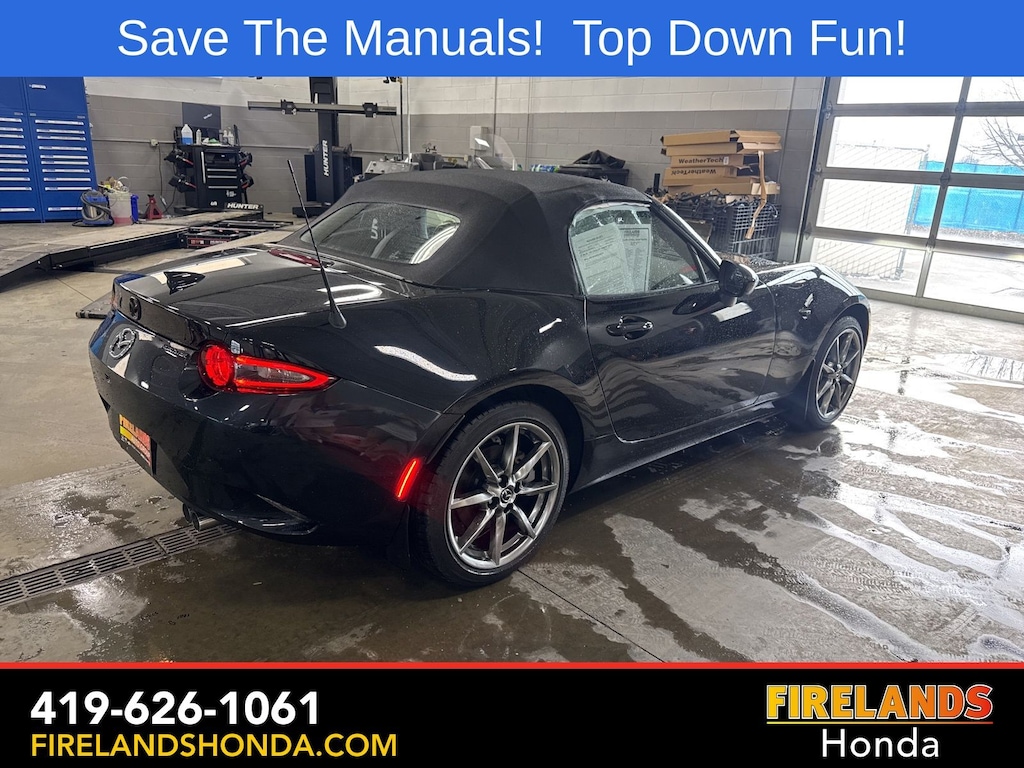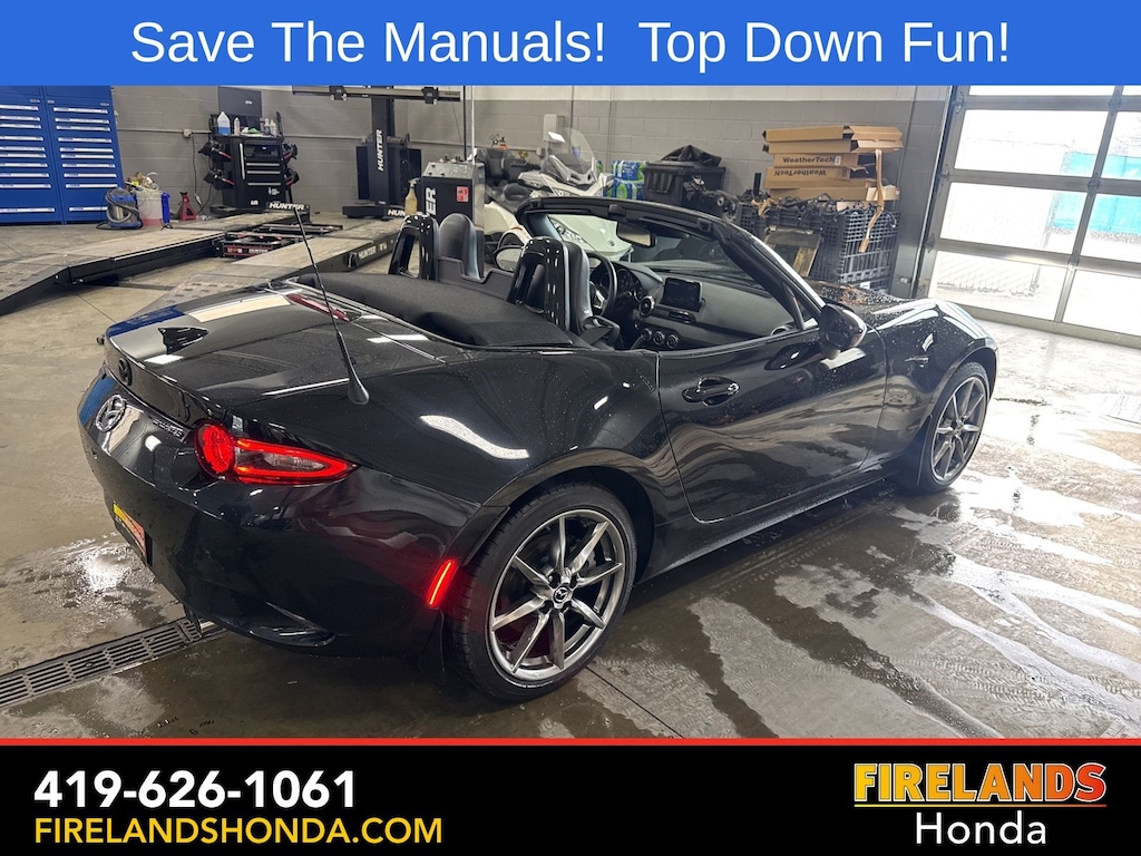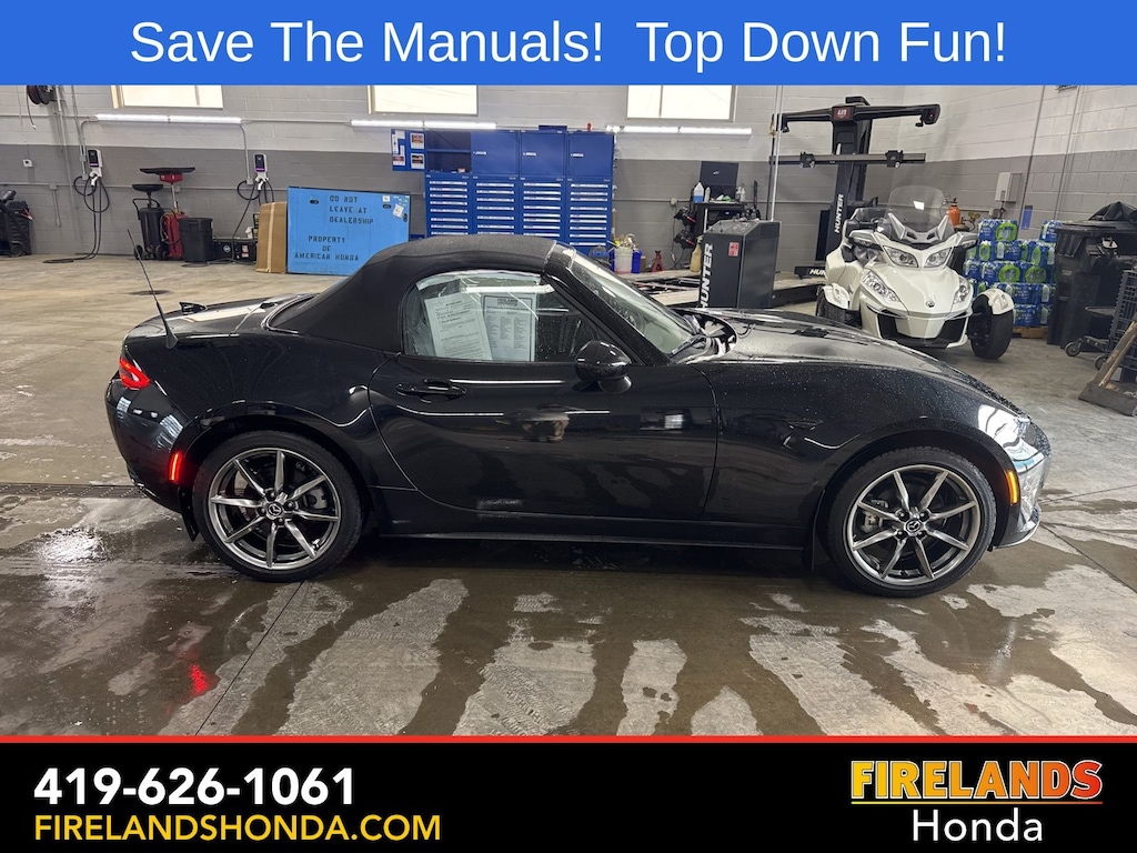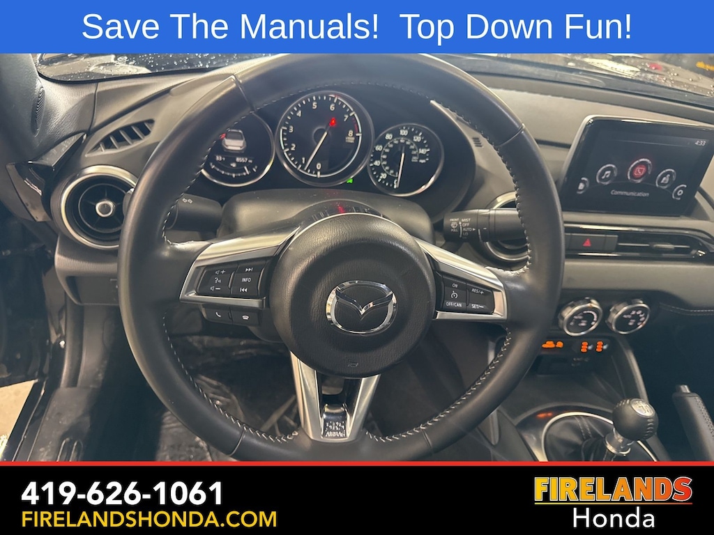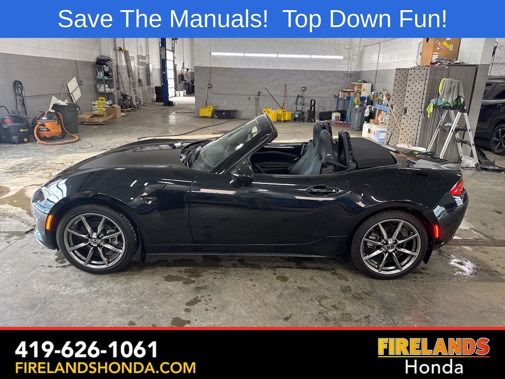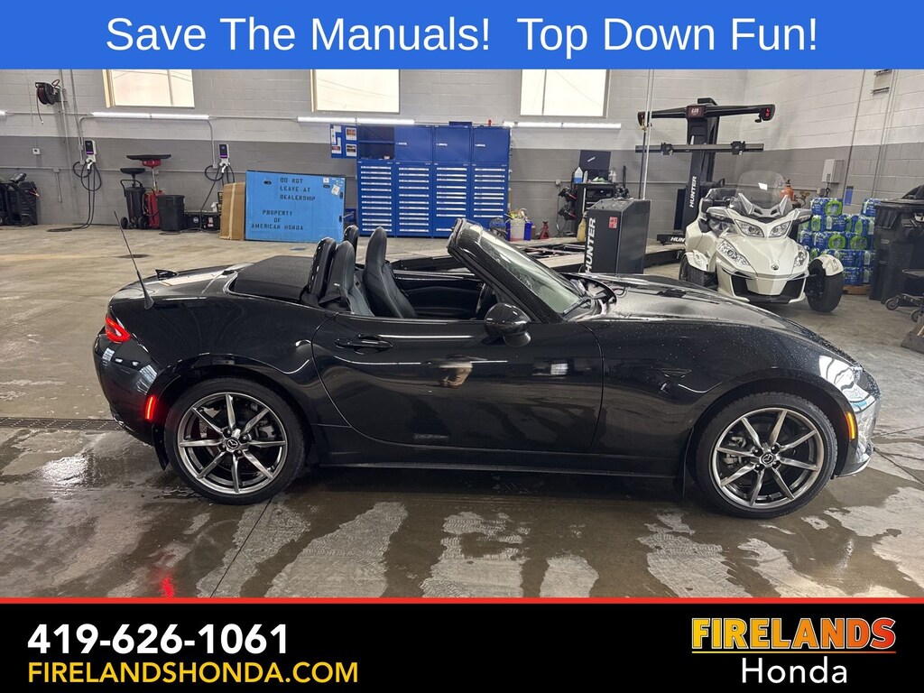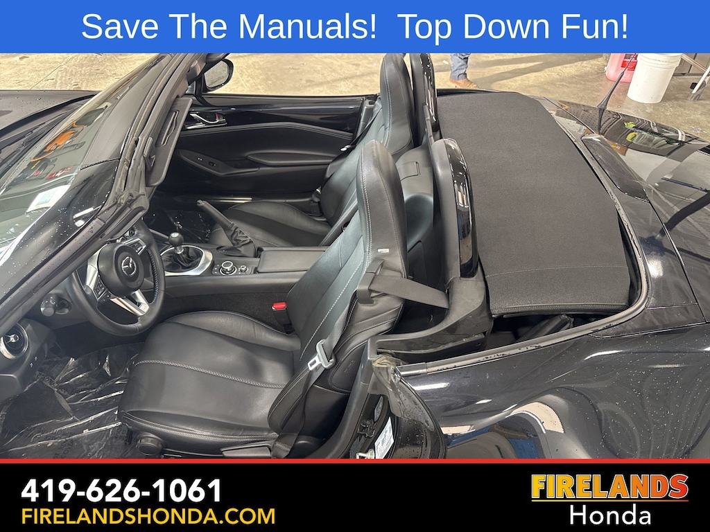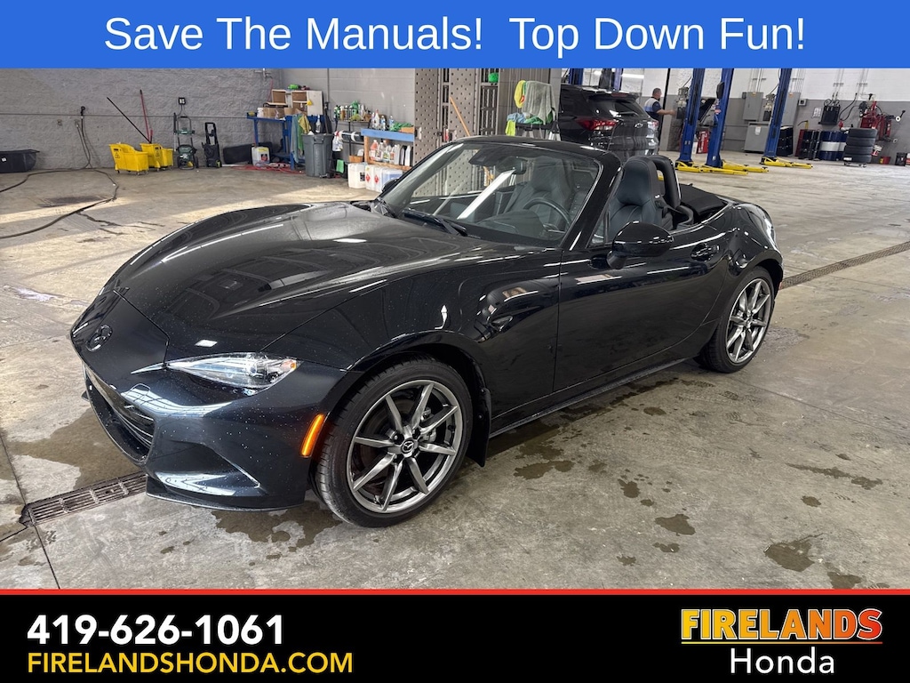Firelands Honda is proud to offer this superb 2022 Mazda MX-5 Miata in Jet Black Mica. This MX-5 Miata has been checked by our award winning service department. Hot features include: Bluetooth Hands Free, Back Up Camera, Navigation / GPS, Balance of Factory Warranty, Service Records Available, Heated Leather Seats, Lane Departure Warning, Apple Carplay/Android Auto, Fog Lights, Automatic Emergency Braking, Forward Collision Warning, Clean CARFAX, No Accidents, Bose Speakers, 4-Wheel Disc Brakes, 9 Speakers, ABS brakes, Air Conditioning, All Weather Floor Mats, Alloy wheels, AM/FM radio: SiriusXM, AppLink/Apple CarPlay and Android Auto, Auto High-beam Headlights, Auto-dimming Rear-View mirror, Automatic temperature control, Brake assist, Bumpers: body-color, Cargo Net, Cargo Tray, Convertible roof lining, Convertible roof wind blocker, Delay-off headlights, Driver vanity mirror, Dual front impact airbags, Dual front side impact airbags, Electronic Stability Control, Emergency communication system: MAZDA CONNECT, Exterior Parking Camera Rear, First Aid Kit, Four wheel independent suspension, Front anti-roll bar, Front Bucket Seats, Front Center Armrest, Fully automatic headlights, Garage door transmitter: HomeLink, Glass rear window, Heated door mirrors, Heated Front Bucket Seats, Heated front seats, Illuminated entry, Leather Shift Knob, Leather Upholstery w/Light Gray Stitching, Low tire pressure warning, MAZDA CONNECT, Navigation System, Occupant sensing airbag, Outside temperature display, Panic alarm, Passenger vanity mirror, Power door mirrors, Power steering, Radio data system, Radio: Bose Audio System w/AudioPilot, Rain sensing wipers, Rear anti-roll bar, Rear window defroster, Roadside Assistance Kit, Speed control, Speed-sensing steering, Sport steering wheel, Tachometer, Telescoping steering wheel, Tilt steering wheel, Traction control, Trip computer, Variably intermittent wipers, Weather Package, Wheel Locks, Wheels: 17" x 7" Dark Silver Aluminum Alloy.