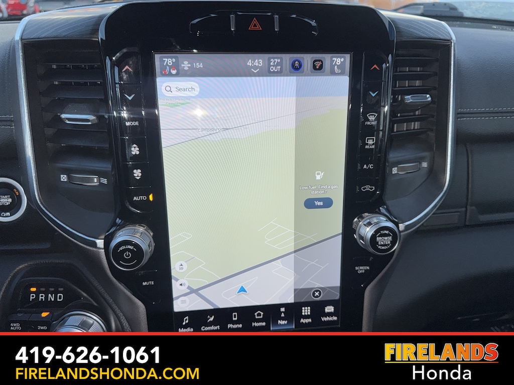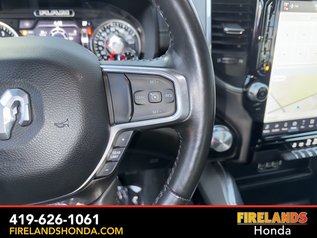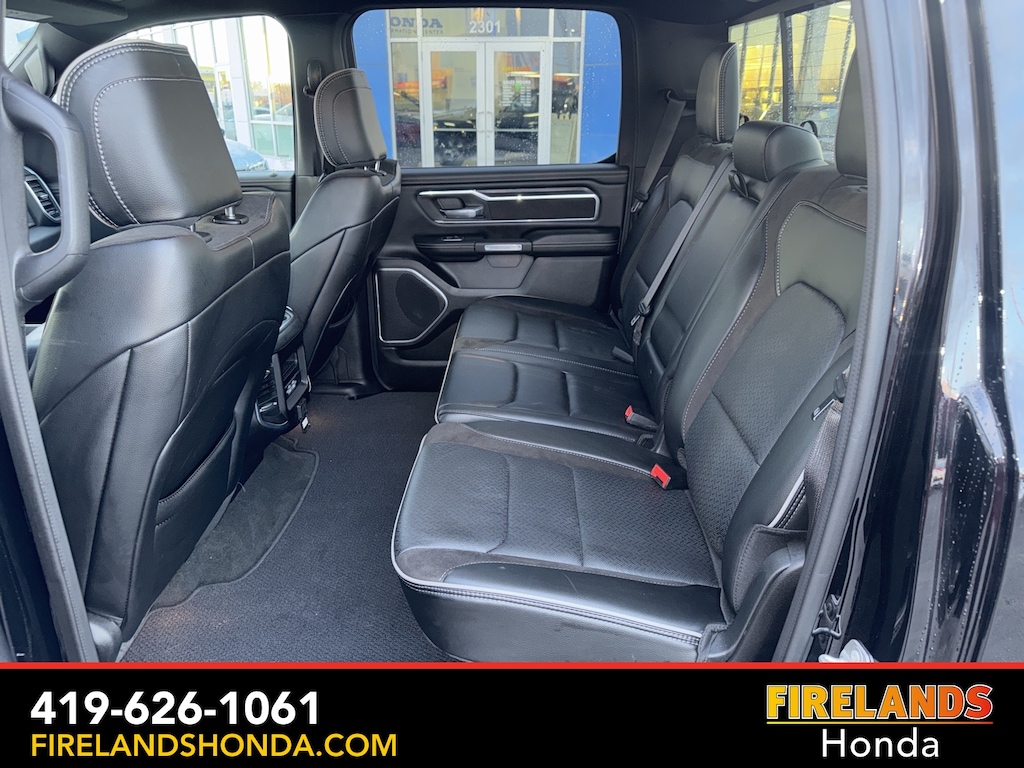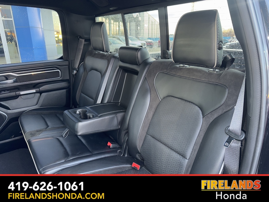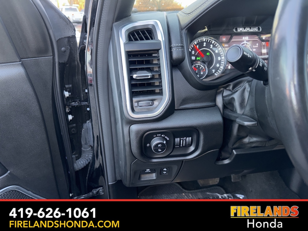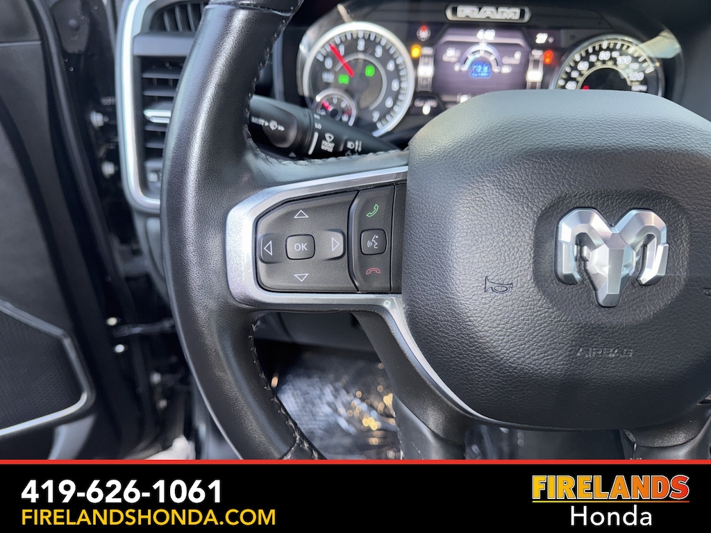 Firelands Honda is proud to offer this good-looking 2023 Ram 1500 in Diamond Black Crystal Pearlcoat. This 1500 has been checked by our award winning service department. Hot features include: Bluetooth Hands Free, Back Up Camera, Navigation / GPS, Remote Start, Local Trade, Ventilated/Cooled Seats, Balance of Factory Warranty, Service Records Available, 4x4, Heated Leather Seats, Locally Owned New Car Trade, Lane Departure Warning, Apple Carplay/Android Auto, Blind Spot Detection, Fog Lights, Automatic Emergency Braking, Forward Collision Warning, Rear Cross Traffic Alert, Clean CARFAX, One Owner, No Accidents, Trailer/Tow Package, Spray-In Bedliner, Power Folding Mirrors, Sliding Rear Window, 12" Touchscreen Display, 2nd Row In Floor Storage Bins, 4G LTE Wi-Fi Hot Spot, Apple CarPlay, Auto High Beam Headlamp Control, Blind Spot & Cross Path Detection, Connected Travel & Traffic Services, Connectivity - US/Canada, Disassociated Touchscreen Display, Electric Shift-On-Demand Transfer Case, Foam Bottle Insert (Door Trim Panel), For Details, Visit DriveUconnect.com, For More Info, Call 800-643-2112, Front Door Accent Lighting, Front LED Fog Lamps, Global Telematics Box Module (TBM), Google Android Auto, GPS Antenna Input, GPS Navigation, HD Radio, Integrated Center Stack Radio, Integrated Voice Command w/Bluetooth, Laramie Level 1 Equipment Group, LED Reflector Headlamps, ParkSense Front/Rear Park Assist w/Stop, Quick Order Package 27H Laramie, Radio: Uconnect 5 Nav w/12.0" Display, Rain Sensitive Windshield Wipers, Rear Door Accent Lighting, Rear Power Sliding Window, Rear Window Defroster, Remote Tailgate Release, SiriusXM Radio Service, SiriusXM w/360L, USB Host Flip.