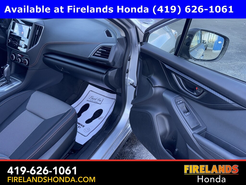 Firelands Honda is proud to offer this superb 2023 Subaru Crosstrek in Ice Silver Metallic. This Crosstrek has been checked by our award winning service department. Hot features include: Bluetooth Hands Free, Back Up Camera, Adaptive Cruise Control, Balance of Factory Warranty, Service Records Available, All-Wheel Drive, Lane Departure Warning, Apple Carplay/Android Auto, Blind Spot Detection, Fog Lights, Automatic Emergency Braking, Forward Collision Warning, Rear Cross Traffic Alert, Moonroof / Sunroof, Clean CARFAX, One Owner, No Accidents, Heated Seats.