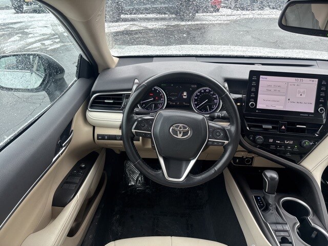 Great Price, New Tires, Clean CARFAX, Like New, Leather Seats, Heated Seats, Heated Steering Wheel, CarPlay, Android Auto, Bluetooth, Backup Camera, Brake Assist, Steering Wheel Controls, Keyless Entry, Camry XLE, 4D Sedan, FWD, 4-Wheel Disc Brakes, Apple CarPlay/Android Auto, Auto-dimming Rear-View mirror, Automatic temperature control, Brake assist, Delay-off headlights, Driver vanity mirror, Dual front side impact airbags, Emergency communication system: Safety Connect with 1-year trial, Exterior Parking Camera Rear, Front Bucket Seats, Front dual zone A/C, Front reading lights, Fully automatic headlights, Garage door transmitter: HomeLink, Heated door mirrors, Heated front seats, Illuminated entry, Low tire pressure warning, Occupant sensing airbag, Outside temperature display, Overhead console, Perforated Leather Seat Trim, Power driver seat, Power passenger seat, Radio data system, Radio: AM/FM/HD Audio Plus, Rear seat center armrest, Rear side impact airbag, Remote keyless entry, Security system, Speed control, Speed-sensing steering, Steering wheel mounted audio controls, Tachometer, Trip computer, Turn signal indicator mirrors, Variably intermittent wipers, Wheels: 8.0J x 18" Dark Gray Machined-Finish Alloy.
